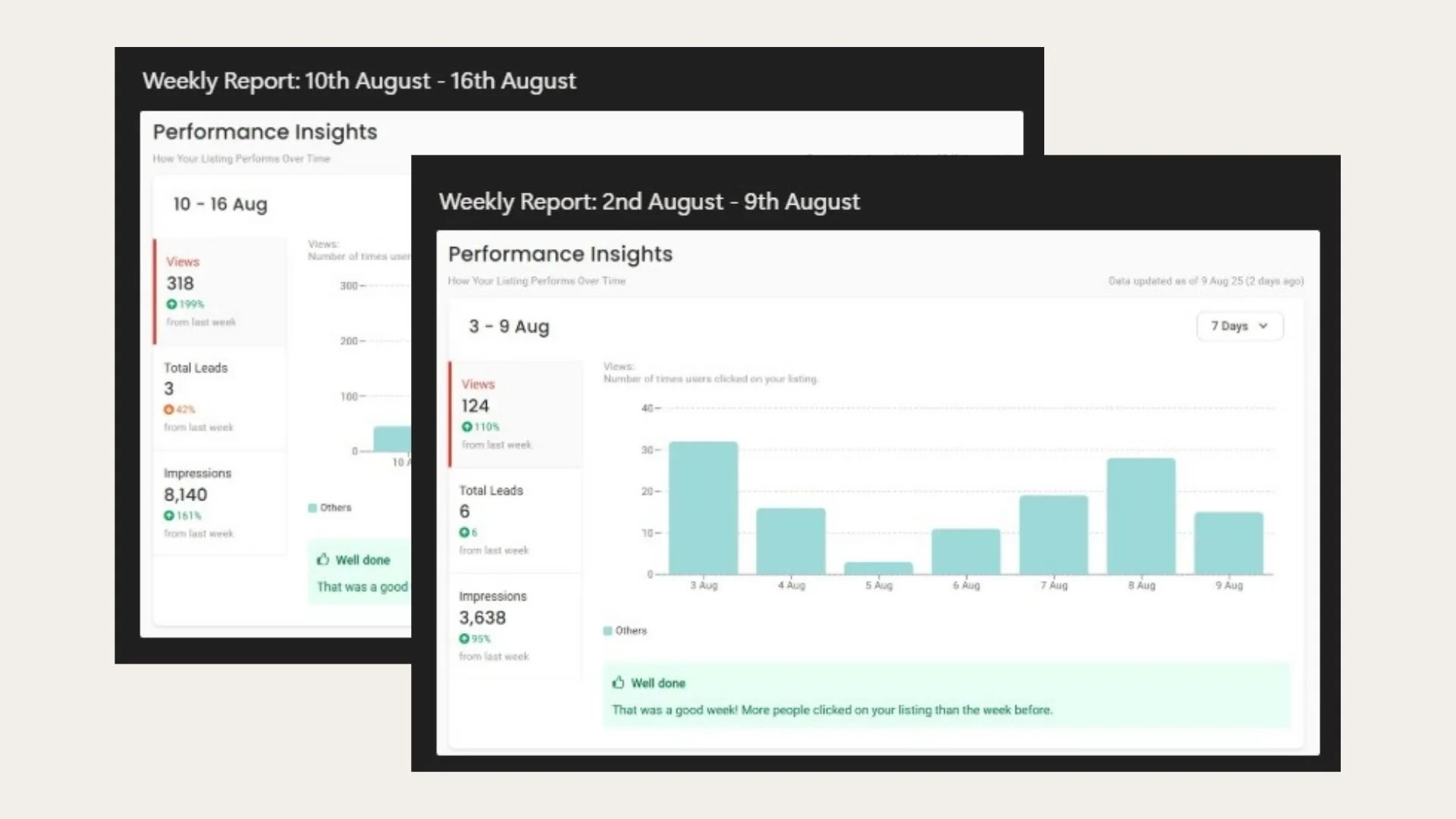 Customised Live Dashboard access. Every viewing logged with buyer feedback. Weekly performance updates sent without you needing to ask.