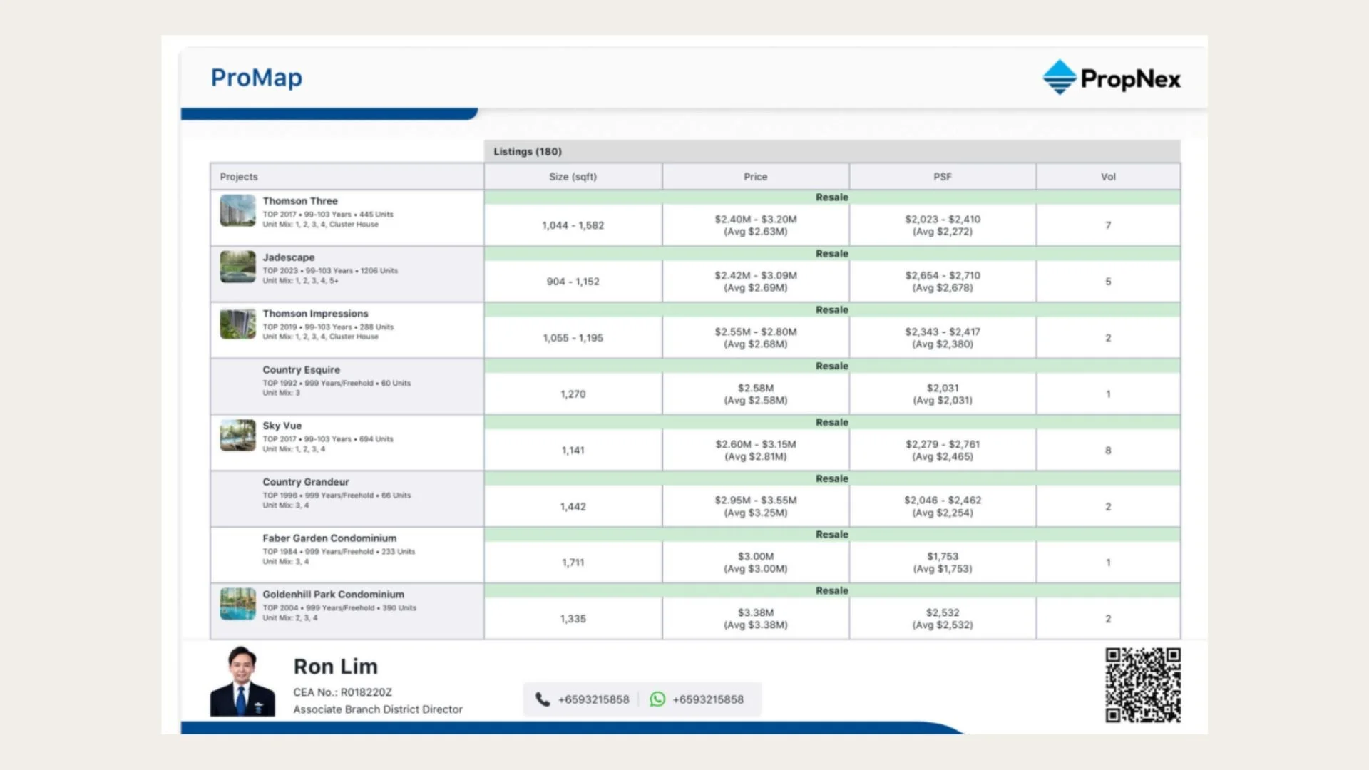 ProMap is PropNex's proprietary real-time market intelligence tool — giving Own It access to live Singapore property transaction data, district-level pricing trends, sales volume, and competitive supply figures. Where the CMA establishes what comparable properties have transacted for, ProMap maps the competitive landscape right now: active competing listings, price positioning, and buyer demand signals. Together, both tools cross-reference every pricing strategy across multiple verified data sources.